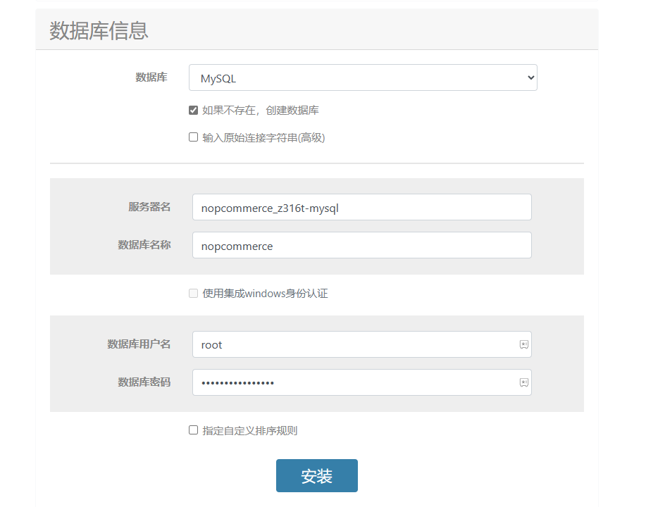 nopcommerce - 数据库用户名: